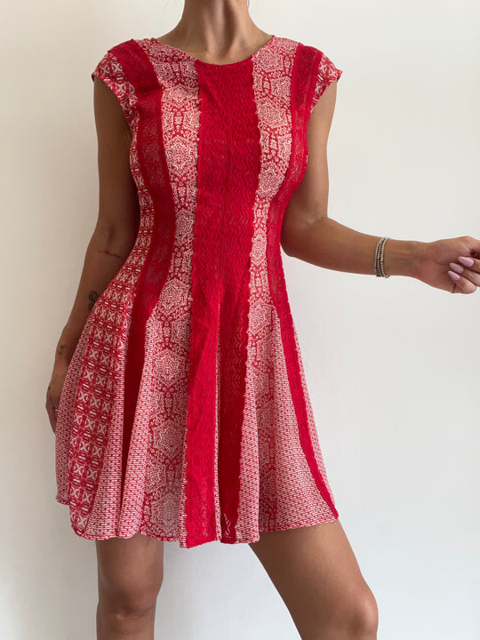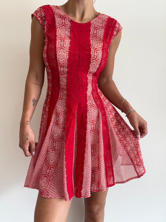 BCBG vestido rojo con blanco by ANBA PRELOVED