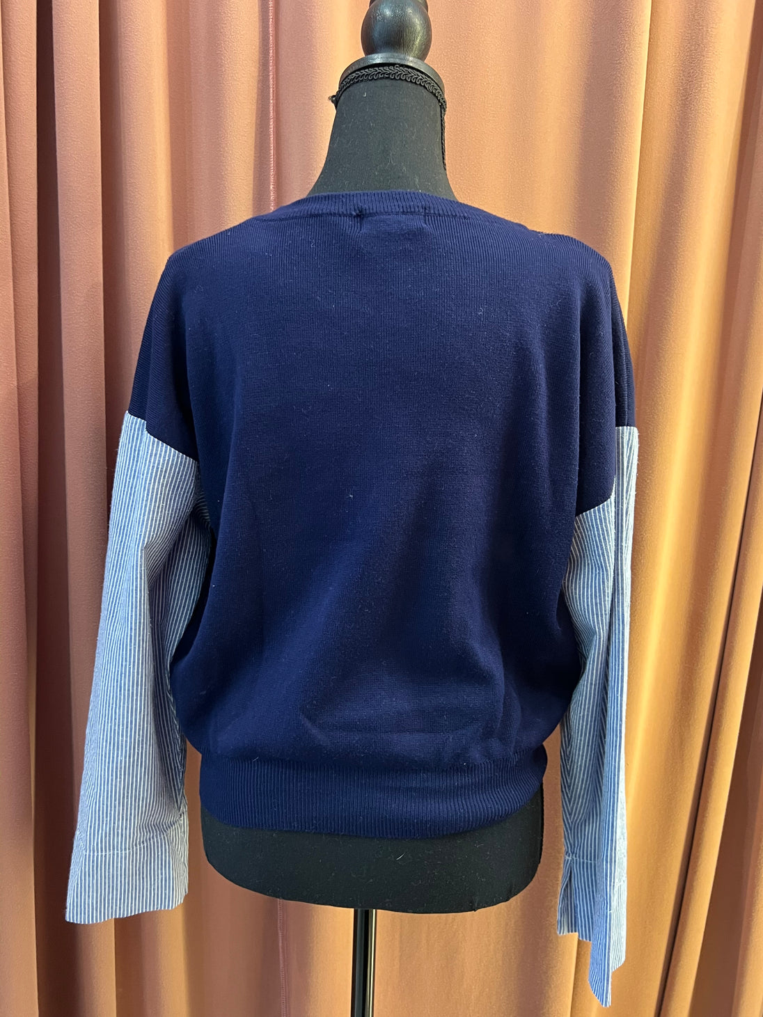 LILI SIDONIO sweater azul marino con mangas de rayas by ANBA PRELOVED