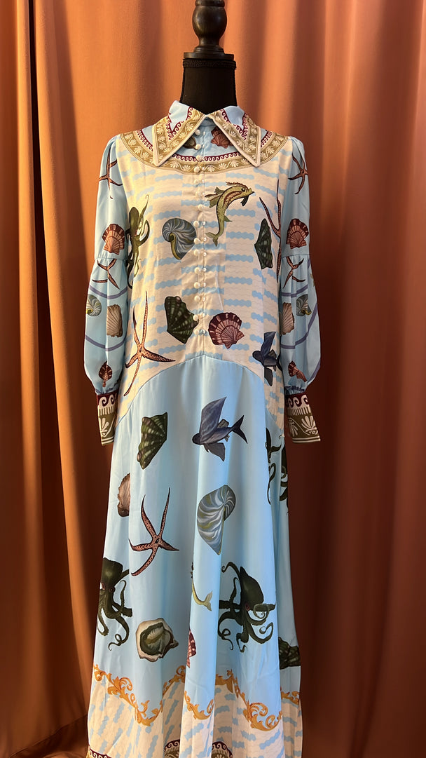 WOOSEA Vestido azul largo formal by ANBA PRELOVED