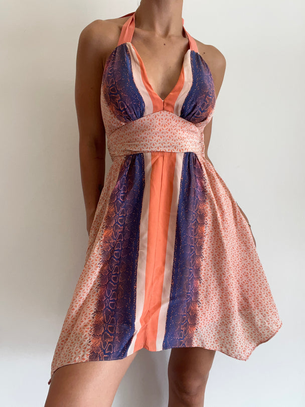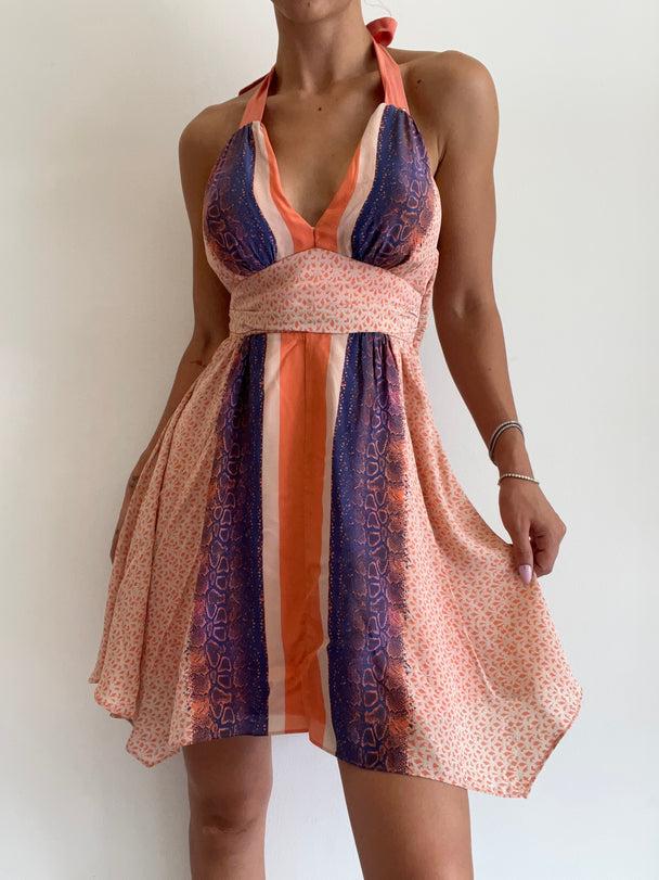 GUESS vestido beige, naranja y morado by ANBA PRELOVED