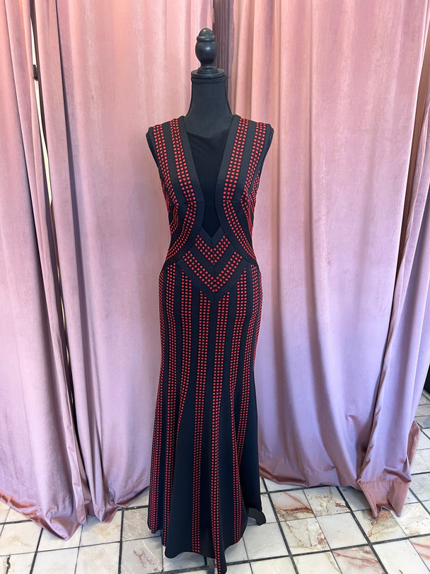 TADASHI SHOJI vestido negro con cuadros rojo by ANBA PRELOVED