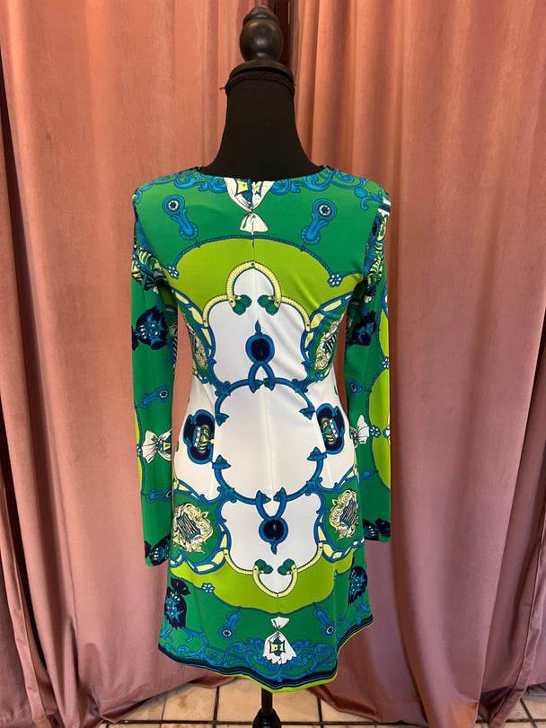 JULIE BROWN vestido verde con blanco by ANBA PRELOVED