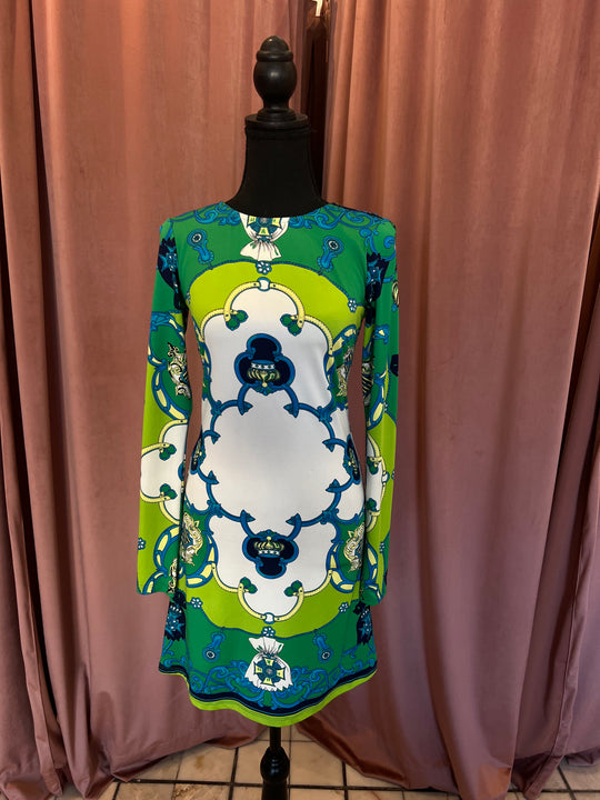 JULIE BROWN vestido verde con blanco by ANBA PRELOVED